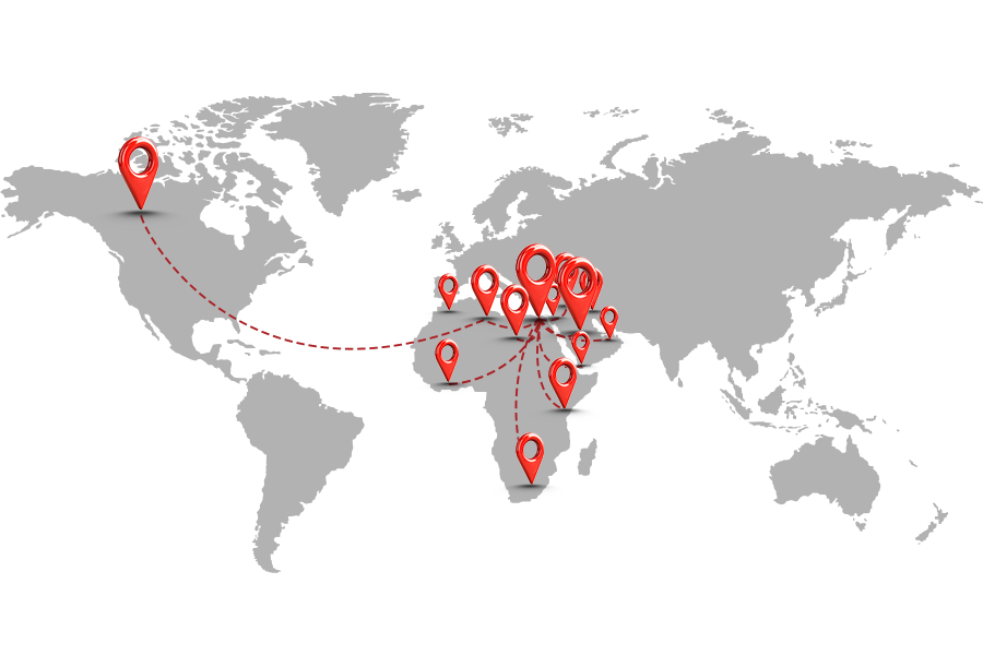 the Middle East, Africa, and North America